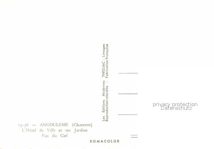 12682781 Angouleme Hotel Ville Jardins Vus du Ciel postalisch nicht gelaufen Erhaltung siehe scans [NatalD47] KatCode: 11170016116015
