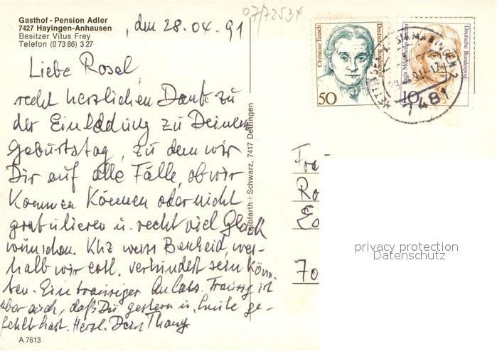 73717320 alte Postkarte Anhausen Hayingen Gasthof Pension Adler Gastraeume Panorama Felsformation postalisch gelaufen Erhaltung siehe scans [WerneD78] KatCode: 11110008415034