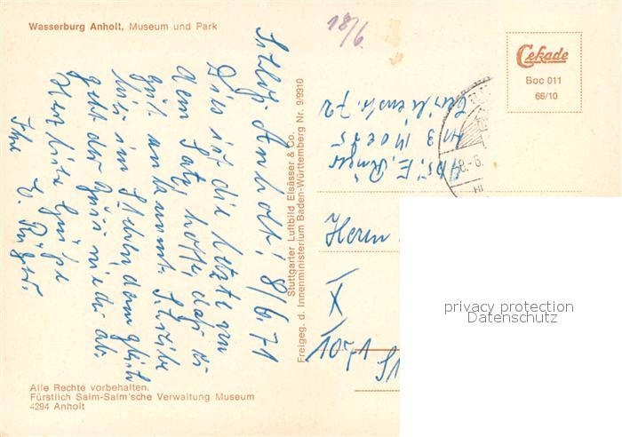 73686256 alte Postkarte Anholt Museum und Park Fliegeraufnahme postalisch gelaufen Erhaltung siehe scans [FriedD77] KatCode: 11110005554032