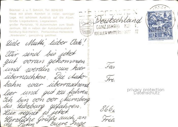 72238611 alte Postkarte Anif Gaestehaus Weinleitner Niederalm postalisch gelaufen Erhaltung siehe scans KatCode: 11390323050301