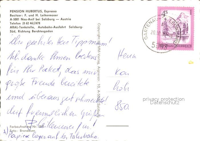 72179929 alte Postkarte Anif Pension Hubertus postalisch gelaufen Erhaltung siehe scans KatCode: 11390323050301