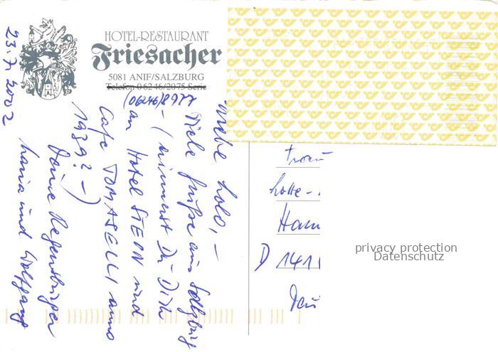 74044281 Anif Salzburg AT Hotel Restaurant Friesacher postalisch nicht gelaufen Erhaltung siehe scans [WerneD78] KatCode: 11390323050301