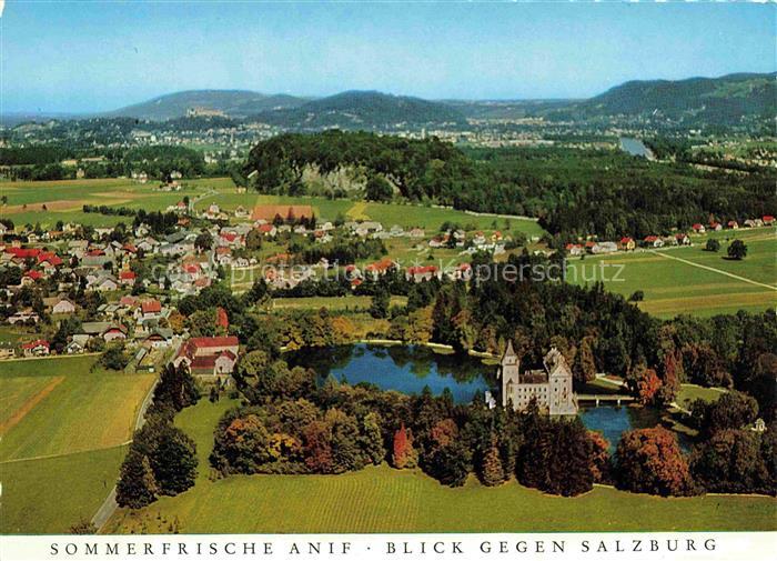 74101055 Anif Salzburg AT Panorama Wasserschloss Sommerfrische Blick gegen Salzburg postalisch nicht gelaufen Fliegeraufnahme Erhaltung siehe scans [FriedD77] KatCode: 11390323050301