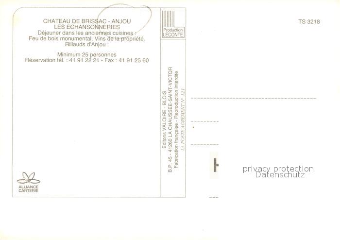 13797801 Anjou 38 Isere Chateau de Brissac Les Echansonneries Dejeuner dans les anciennes duisines postalisch nicht gelaufen Erhaltung siehe scans [WerneD78] Wern Katcode 11170038338009