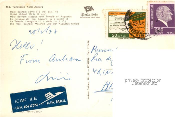 old postcard Ankara Haci Bayram camii postalisch gelaufen Erhaltung siehe scans [NatalD47]
