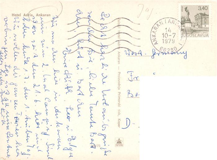 old postcard Ankaran Ancarano Slovenia Hotel Adria postalisch gelaufen Erhaltung siehe scans [WerneD78]