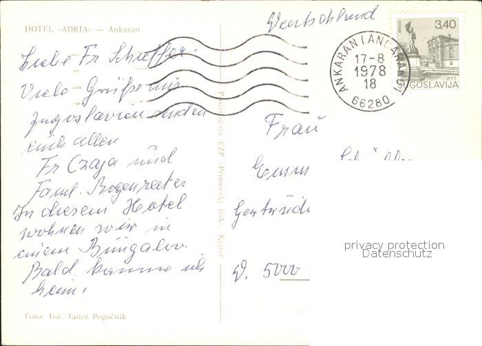 old postcard Ankaran Hotel Adria postalisch gelaufen