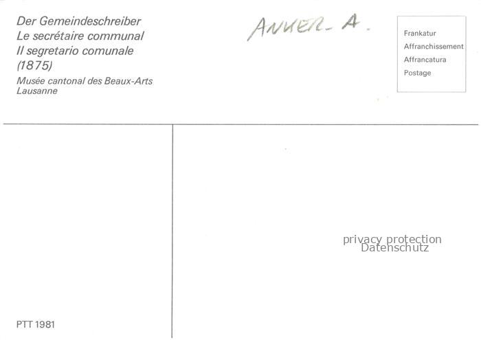 ANKER Albert (1831-1910) Kuenstlerkarte Gemeindeschreiber