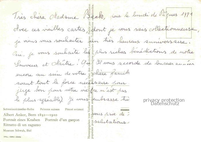 74021308 alte Postkarte Anker Albert Kuenstlerkarte Portrait eines Knaben postalisch gelaufen Erhaltung siehe scans [IrynaD87] KatCode: 22240000003200