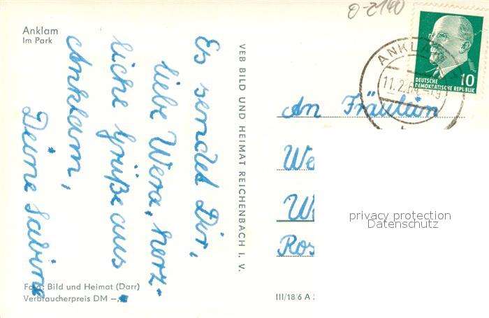 43498648 alte Postkarte Anklam Im Park postalisch gelaufen Erhaltung siehe scans [LiesaD40] KatCode: 11110013059002