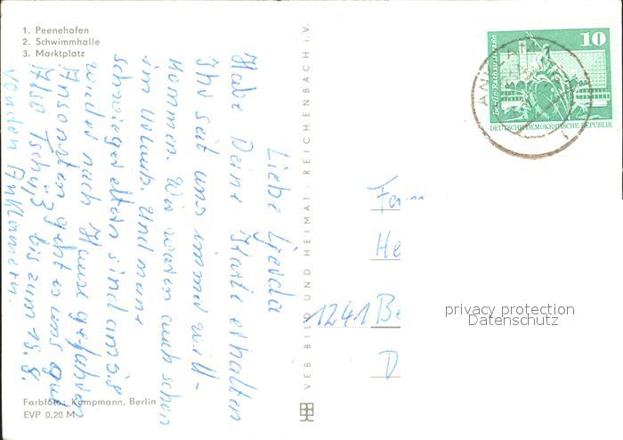 72016754 alte Postkarte Anklam Peenehafen Schwimmhalle Marktplatz postalisch gelaufen Erhaltung siehe scans KatCode: 11110013059002