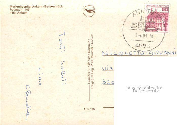 73042544 alte Postkarte Ankum Marienhospital Bersenbrueck Fliegeraufnahme postalisch gelaufen Erhaltung siehe scans [FriedD77] KatCode: 11110003459002