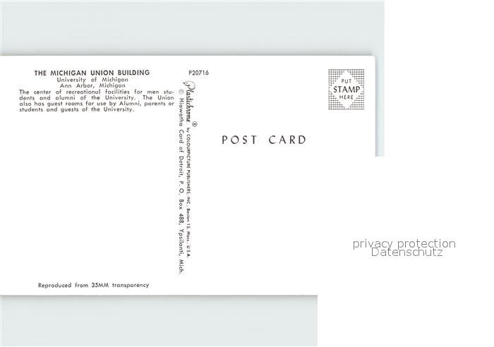 72198208 Ann Arbor Michigan Union Building University of Michigan postalisch nicht gelaufen Erhaltung siehe scans KatCode: 14140240000000