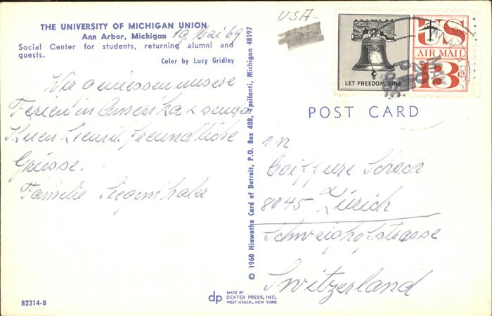 11491671 old postcard Ann Arbor University of Michigan Union Social Center postalisch gelaufen KatCode: 14140240000000