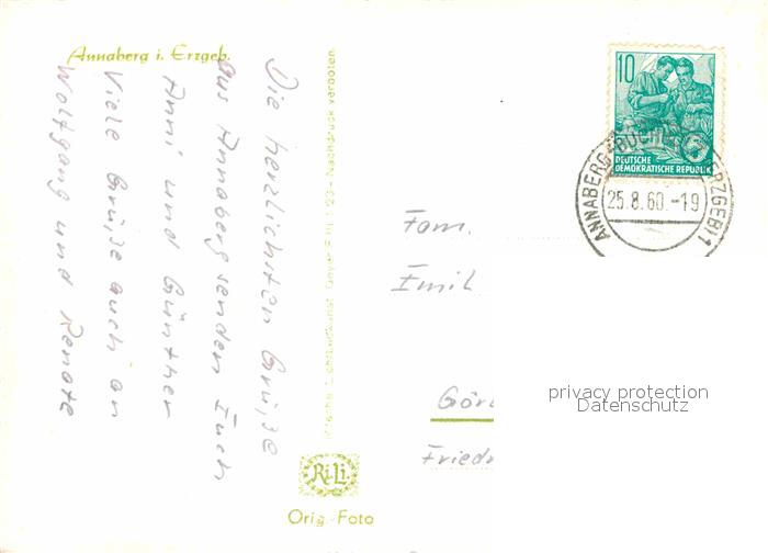 72647289 alte Postkarte Annaberg-Buchholz Erzgebirge postalisch gelaufen Erhaltung siehe scans [NatalD47] KatCode: 11110014171010