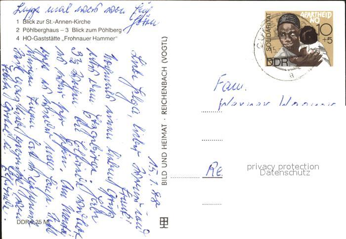 72442717 alte Postkarte Annaberg-Buchholz Erzgebirge Annenkirche Poehlberghaus HO Gaststaette postalisch gelaufen Erhaltung siehe scans KatCode: 11110014171010