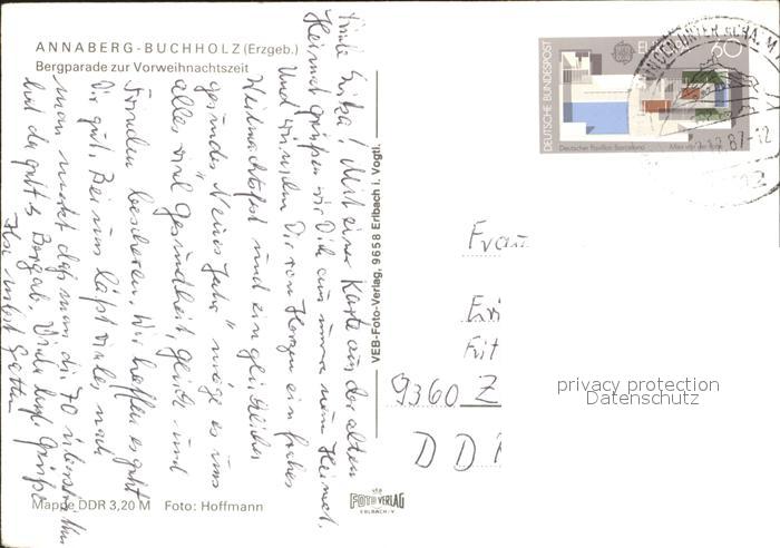 72343532 alte Postkarte Annaberg-Buchholz Erzgebirge Bergparade zur Vorweihnachtszeit postalisch gelaufen Erhaltung siehe scans KatCode: 11110014171010
