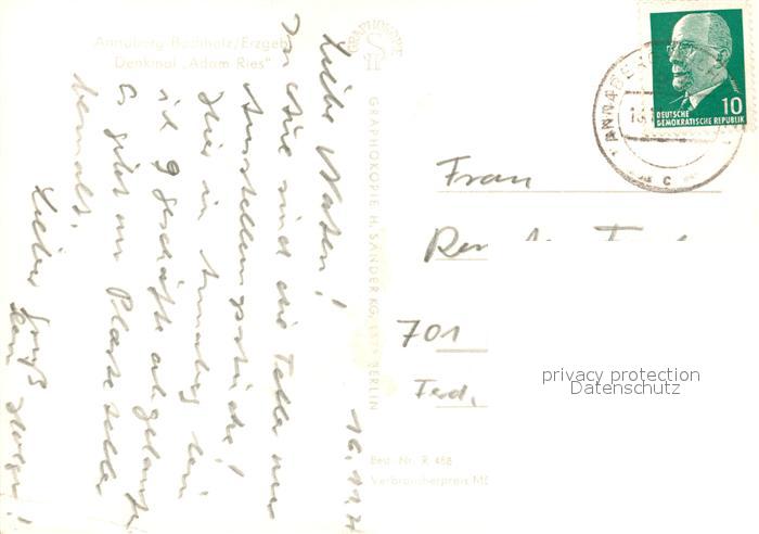 73099334 alte Postkarte Annaberg-Buchholz Erzgebirge Denkmal Adam Ries postalisch gelaufen Erhaltung siehe scans [KathaD81] KatCode: 11110014171010