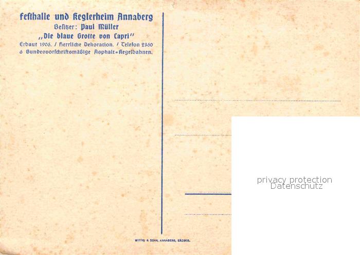 42604585 Annaberg-Buchholz Erzgebirge Festhalle Keglerheim Die blaue Grotte von Capri postalisch nicht gelaufen Erhaltung siehe scans [KathaD79] KatCode: 11110014171010