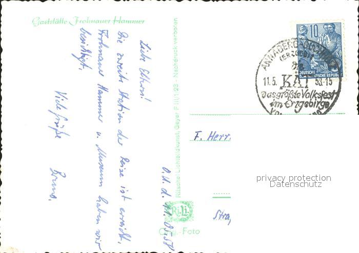 72174331 alte Postkarte Annaberg-Buchholz Erzgebirge Gaststaette Frohnauer Hammer postalisch gelaufen Erhaltung siehe scans KatCode: 11110014171010
