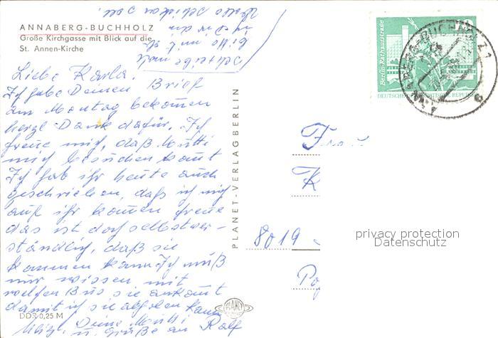 72118635 alte Postkarte Annaberg-Buchholz Erzgebirge Grosse-Kirchgasse St. Annen-Kirche postalisch gelaufen Erhaltung siehe scans KatCode: 11110014171010