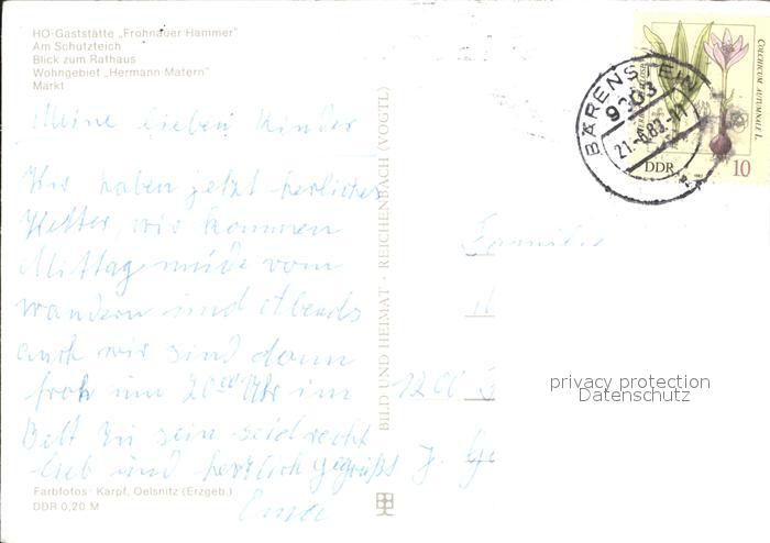 72258175 alte Postkarte Annaberg-Buchholz Erzgebirge HO-Gaststaette Frohnauer Hammer Markt Schutzteich postalisch gelaufen Erhaltung siehe scans KatCode: 11110014171010