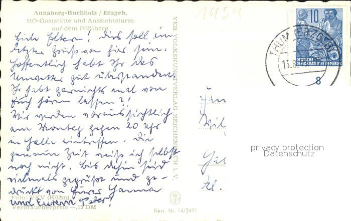 72464038 alte Postkarte Annaberg-Buchholz Erzgebirge HO Gaststaette und Aussichtsturm auf dem Poehlberg postalisch gelaufen Erhaltung siehe scans KatCode: 11110014171010