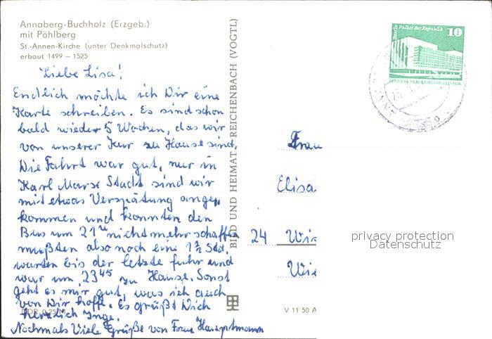 72335799 alte Postkarte Annaberg-Buchholz Erzgebirge Teilansicht mit St Annenkirche postalisch gelaufen Erhaltung siehe scans KatCode: 11110014171010