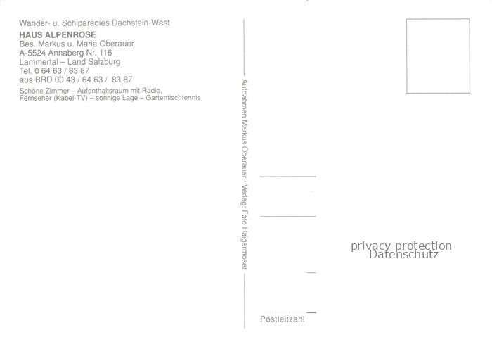 74100825 Annaberg Lammertal Annaberg-Lungoetz AT Gaestehaus Haus Alpenrose Salzburger Dolomiten postalisch nicht gelaufen Erhaltung siehe scans [FriedD77] KatCode: 11390323050203