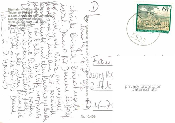 72815748 alte Postkarte Annaberg-Lungoetz Stuhlalm postalisch gelaufen Erhaltung siehe scans [AndreD76] KatCode: 11390323050203