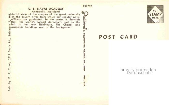 72876367 Annapolis Maryland Fliegeraufnahme U.S. Naval Academy postalisch nicht gelaufen Erhaltung siehe scans [AndreD76] KatCode: 14140220000000