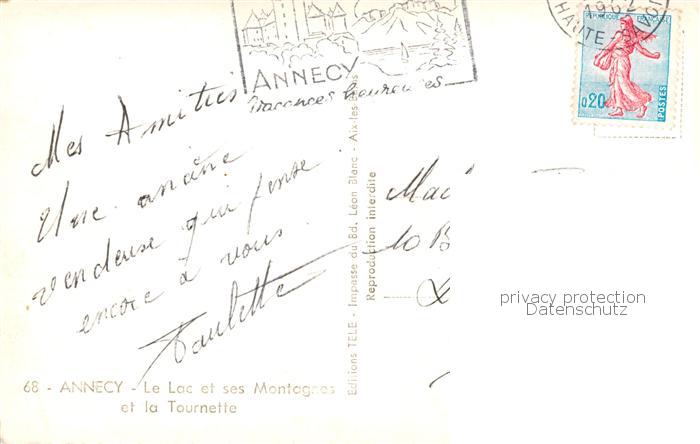 13838391 Annecy 74 Haute-Savoie Le lac et ses montagnes et la Tournette Alpes postalisch gelaufen Erhaltung siehe scans [FriedD77] carte postale Frie Katcode 11170074174010