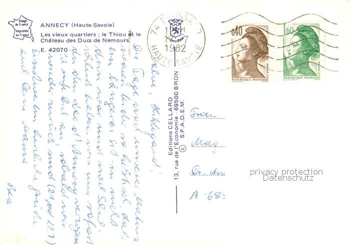 13848036 Annecy 74 Haute-Savoie Les vieux quartiers le Thiou et le Chateau des Ducs de Nemours KatCode 11170074174010