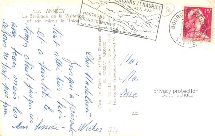 13489456 carte postale Annecy Haute-Savoie Basilique de la Visitation et le Thiou postalisch gelaufen Erhaltung siehe scans [FriedD77] KatCode: 11170074174010