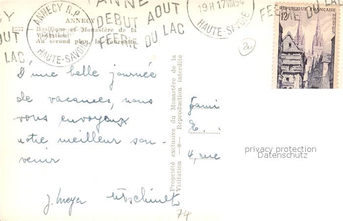 13488879 carte postale Annecy Haute-Savoie Basilique et Monastère de la Visitation La Tournette Alpes postalisch gelaufen Erhaltung siehe scans [FriedD77] KatCode: 11170074174010