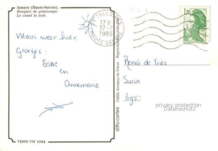 12932451 carte postale Annecy Haute-Savoie Bouquet de printemps Le canal la nuit postalisch gelaufen Erhaltung siehe scans [WerneD78] KatCode: 11170074174010
