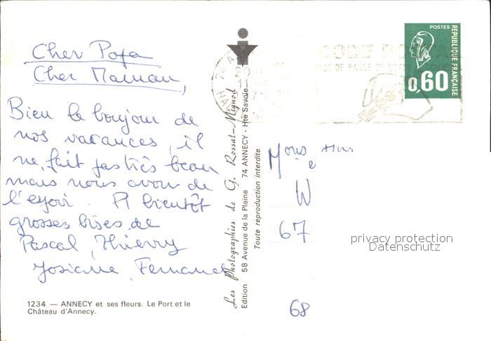 12326852 carte postale Annecy Haute-Savoie et ses fleurs Le Port et le Chateau d Annecy postalisch gelaufen Erhaltung siehe scans KatCode: 11170074174010
