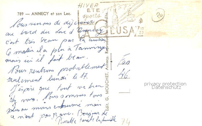 13489434 carte postale Annecy Haute-Savoie et son Lac Alpes Francaises postalisch gelaufen Erhaltung siehe scans [FriedD77] KatCode: 11170074174010
