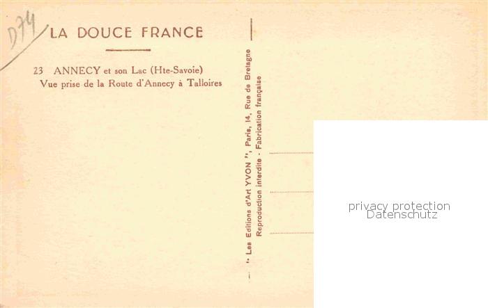 12697613 Annecy Haute-Savoie et son Lac Vue prise de la Route d Annecy a Talloires Collection La Douce France Automobile Alpes postalisch nicht gelaufen Erhaltung siehe scans [FriedD77] KatCode: 11170074174010