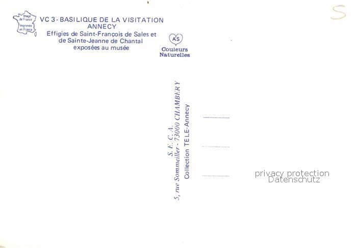 12716565 Annecy Haute-Savoie La Basilique de La Visitation Effigies de Saint Francois de Sales et Sainte Jeanne de Chantal postalisch nicht gelaufen Erhaltung siehe scans [LiesaD40] KatCode: 11170074174010