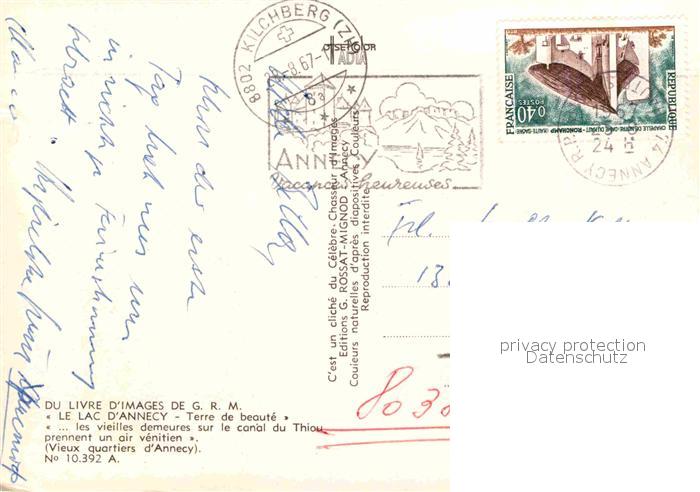 12768844 carte postale Annecy Haute-Savoie Lac canal du Thiou postalisch gelaufen Erhaltung siehe scans [LiesaD40] KatCode: 11170074174010