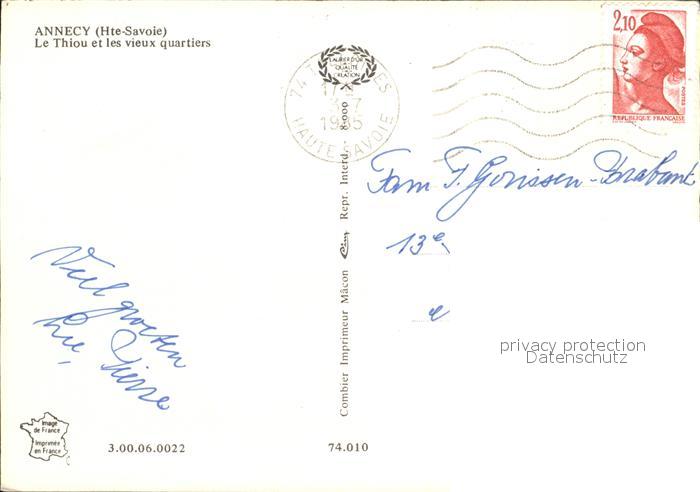 12452580 carte postale Annecy Haute-Savoie Thiou et les vieux quartiers postalisch gelaufen Erhaltung siehe scans KatCode: 11170074174010