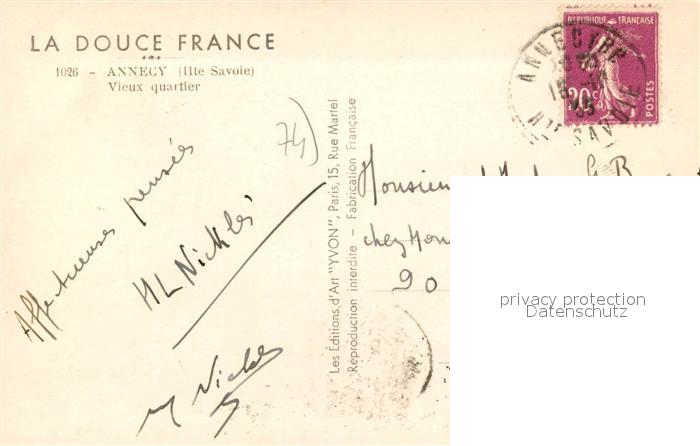 13365609 carte postale Annecy Haute-Savoie Vieux quartier postalisch gelaufen Erhaltung siehe scans [WerneD78] KatCode: 11170074174010