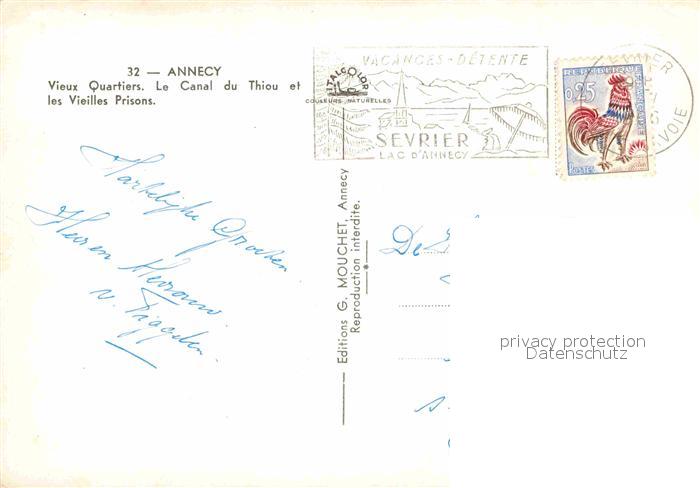 12688007 carte postale Annecy Haute-Savoie Vieux Quartiers Canal du Thiou et les vieilles prisons postalisch gelaufen Erhaltung siehe scans [FriedD77] KatCode: 11170074174010