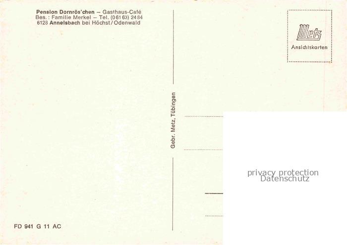 74040440 Annelsbach Hoechst Odenwald Pension Dornroeschen Gasthaus Café Landschaftspanorama postalisch nicht gelaufen Erhaltung siehe scans [FriedD77] KatCode: 11110006437009