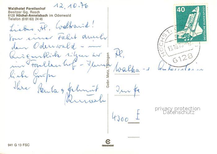 73542974 alte Postkarte Annelsbach Waldhotel Forellenhof Restaurant postalisch gelaufen Erhaltung siehe scans [FriedD77] KatCode: 11110006437009