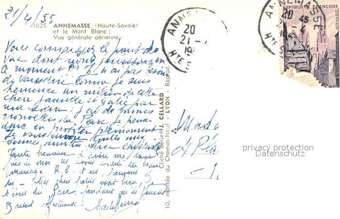 12963564 carte postale Annemasse Fliegeraufnahme mit Mont Blanc postalisch gelaufen Erhaltung siehe scans [WerneD78] KatCode: 11170074374012