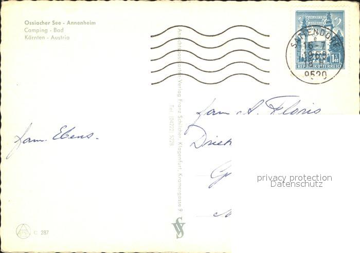 72411868 alte Postkarte Annenheim Ossiacher See Camping Bad Fliegeraufnahme postalisch gelaufen Erhaltung siehe scans KatCode: 11390