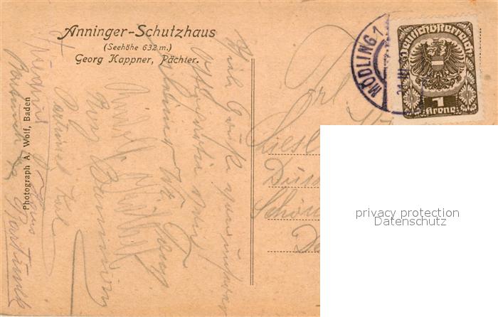 43075877 alte Postkarte Anninger Schutzhaus postalisch gelaufen Erhaltung siehe scans [WerneD78] KatCode: 11390