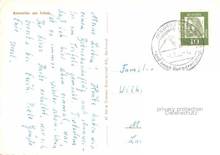 72819724 alte Postkarte Annweiler Trifels postalisch gelaufen Erhaltung siehe scans [NatalD47] KatCode: 11110007337501